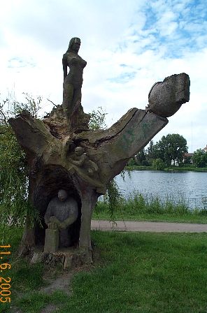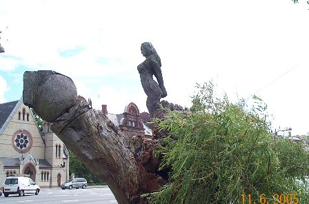 Det er Skulptør Ole Barslund, der har lavet skulpturen i dette gamle piletræ ved Sct. Jørgen Sø.